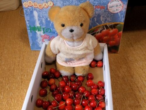 「神町のさくらんぼ」 山形県東根市の柴田果樹園さんから、 初夏の香りいっぱいのサクランボが届きました。 上品な甘さがたまりません! 半分は既に冷蔵庫で出動準備中!!