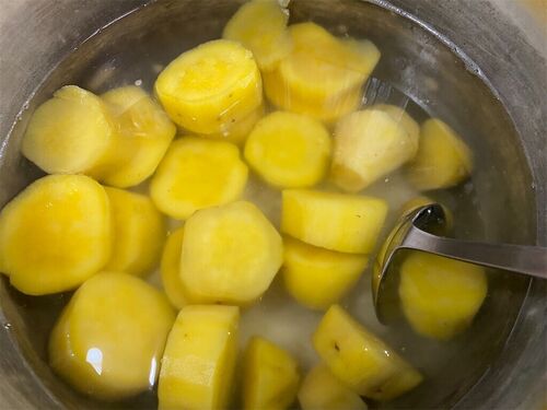 いよいよ今年も大詰め、おせちの準備も佳境です。 栗きんとんのベースになるさつまいもの裏漉し担当は汗だくです。 今回は鳴門金時を採用、紅あずまが1番だとは思うのですが近所の野菜売り場では早々と品切れでした。 ひたすら裏漉しします。大ぶりの芋三本…